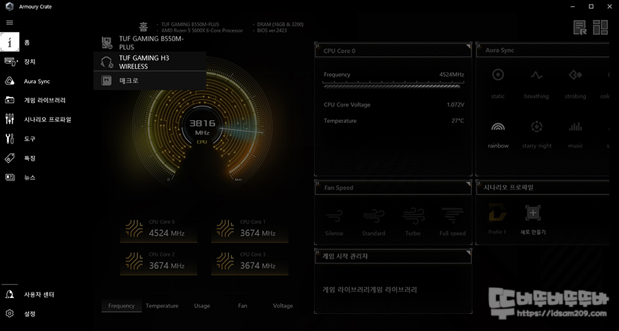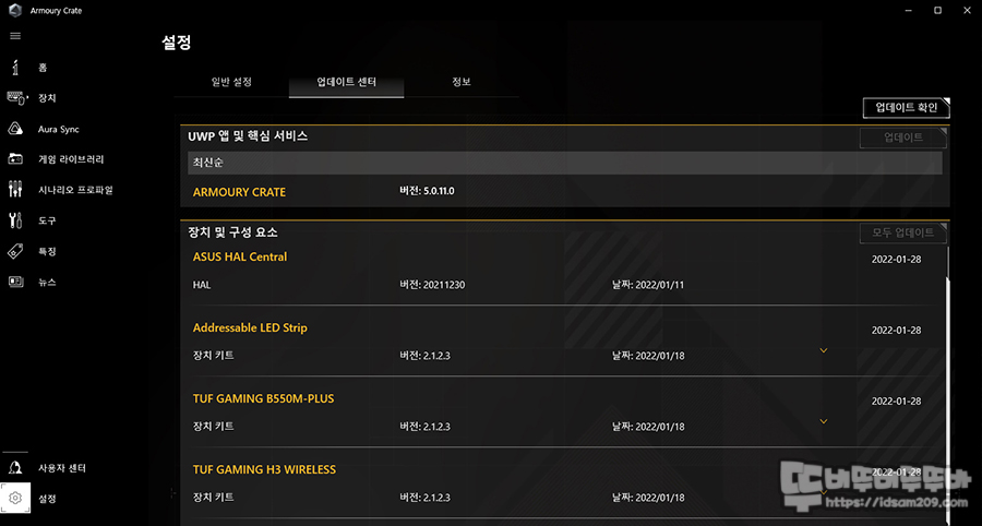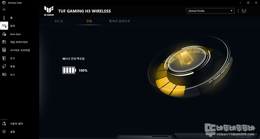 ASUS TUF H3 WIRELESS 게이밍 헤드셋 소프트웨어는 Armorary Crate 설치 후 업데이트를 통해 등록된 제품을 선택하면 소프트웨어 정보를 확인할 수 있는데요.
