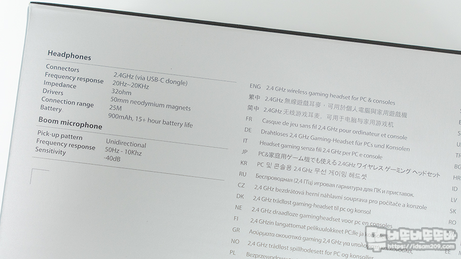 2.4GHz 무선 방식을 지원하는 무선 헤드셋임을 알 수 있습니다.