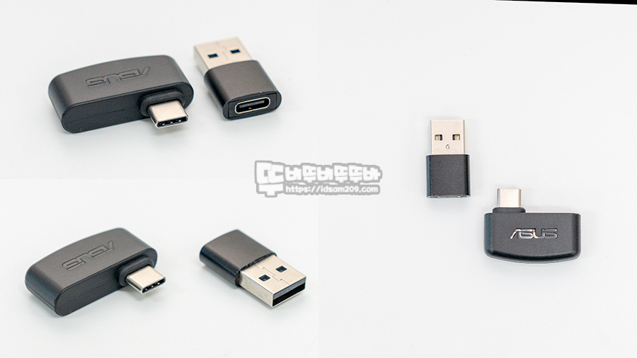 기본 USB-C 단자 모습의 무선 리시버는 USB-C to A 아답터를 이용하여 USB-C 또는 USB-A 단자에 연결하여 사용이 가능하며, 연결 방식은 무선 리시버를 PC, 스마트 디바이스, 게임기에 연결하고 TUF H3 Wireless 전원을 켜면 자동으로 연결되는데요.