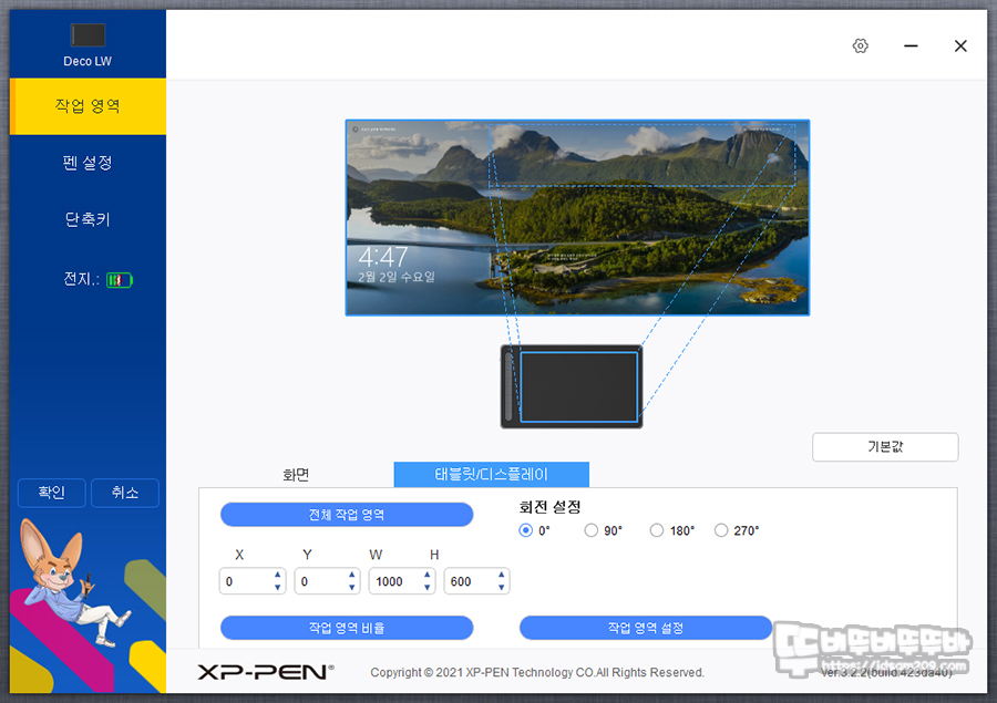 단축키 반대편의 XP-PEN 로고 모습.