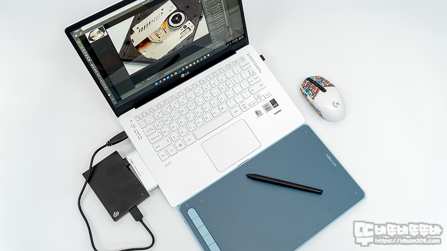 타블렛은 마우스를 대신하여 디지털 필압 기능을 통해 연필 또는 붓 느낌의 드로잉 할 수 있는 장치로 기존에는 대부분 디자인 쪽에 일을 하는 분들이 많이 사용하는 전문가 영역의 제품이었지만 요즘은 비대면 수업 시 필사 작업에도 사용이 될 만큼 일반 영역까지 대중화되고 있는데요.