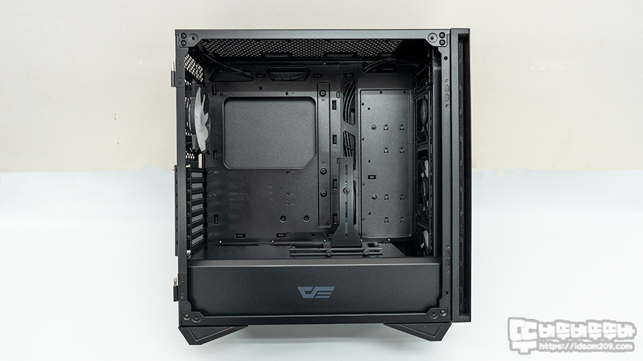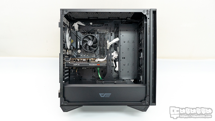 조립한 darkFlash DLS480 RGB 강화유리 미들타워 케이스 내부 모습.
