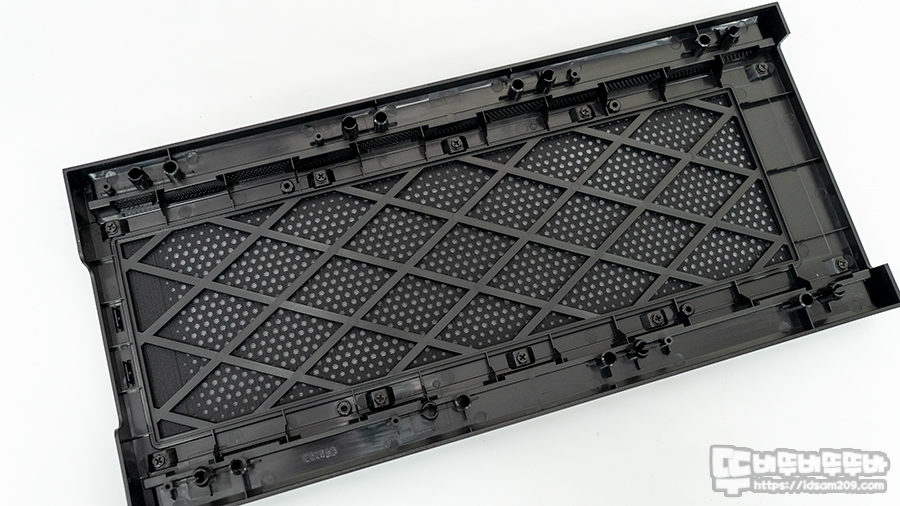 케이스 상단에는 탈부착이 가능한 먼지필터는 고무자석이 사용되어 떨어지지 않고 부착상태를 유지가 가능합니다.