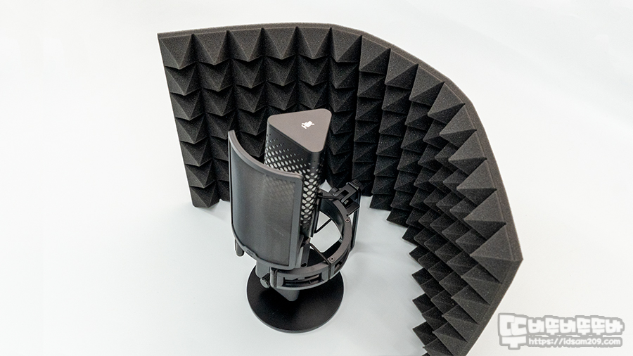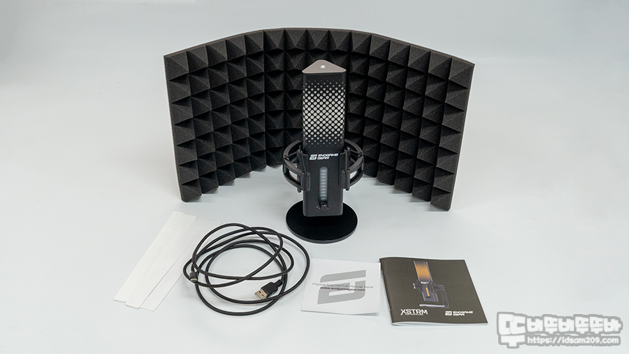 마이크를 사용하는 공간에 소리 반사로 인한 울림이 있는 경우 반사되는 소리를 흡수하는 용도로 사용되는 어쿠스틱 폼 패널은 스튜디오 급 녹음이 가능한 환경을 제공하는 특별한 아이템인데 엔드게임기어 XSTRM 하이엔드 게이밍 스트리머 마이크는 컴퓨터 본체 빼고 녹음에 필요한 모든 걸 다 주는 거 같습니다.