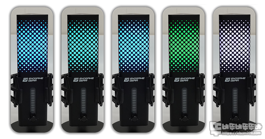 엔드게임기어 XSTRM USB 마이크는 모든 면에서 동일한 RGB 효과가 표현되는 모습.