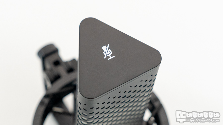 마이크를 둘러보다가 음소거 기능이 없나? 하고 생각할 찰나 마이크 상단에 터치센서로 작동하는 음소거 버튼을 확인할 수 있는데요.