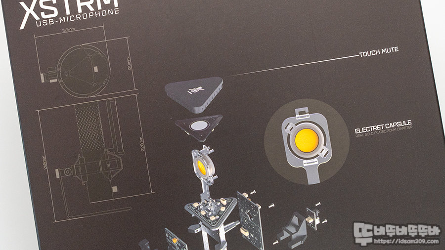 삼각형 디자인 하우징 전면에 위치하는 20mm 리얼 골드 도금 일렉트릭 콘덴서는 전문 녹음 스튜디오급의 마이크의 성능 선명한 음성 수음을 지원합니다.