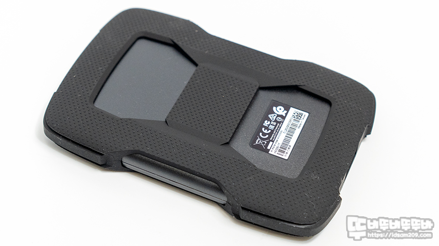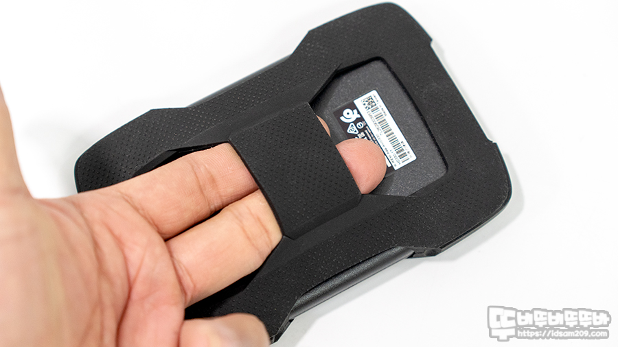 실리콘 케이스는 스마트폰에서 볼 수 있는 충격 보호 케이스 디자인으로 표면에 오돌토돌한 돌기와 엣지부분 그리고 앞뒤 면에 쿠션감을 더해서 떨어뜨리는 충격 및 일상생활에서 사용 시 미끄러짐을 방지해 주는데 일반적인 플라스틱 하우징으로 디자인된 외장 HDD와 비교 시 차별성이 느껴지네요.
