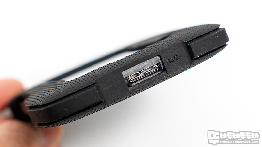 제품의 연결 단자는 외장 HDD에서 많이 사용하는 USB 3.0 Micro B 단자를 사용하고 있으며 보통의 제품들처럼 짧은 케이블은 노트북 사용에 최적화되어있어 일반 PC 사용 시 책상보다는 케이스 위에 올려놓고 사용하는 쪽이 적합하니 참고하시기 바랍니다.