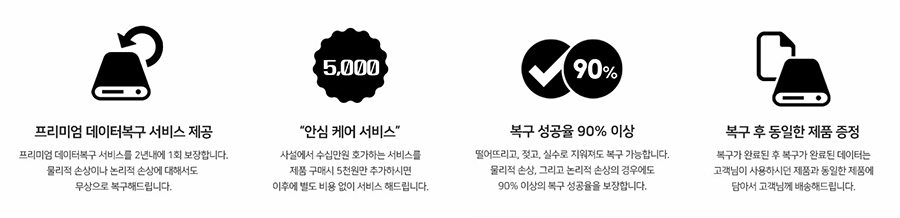 1만 원대 가격에 판매되는 씨게이트의 레스큐 데이터 복구 플랜과 비슷하지만 가격 면에서 더 저렴해서 부담이 없으니 ADATA 제품 구입 시 필수로 추가하시는 게 좋을 거 같습니다.