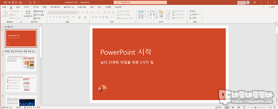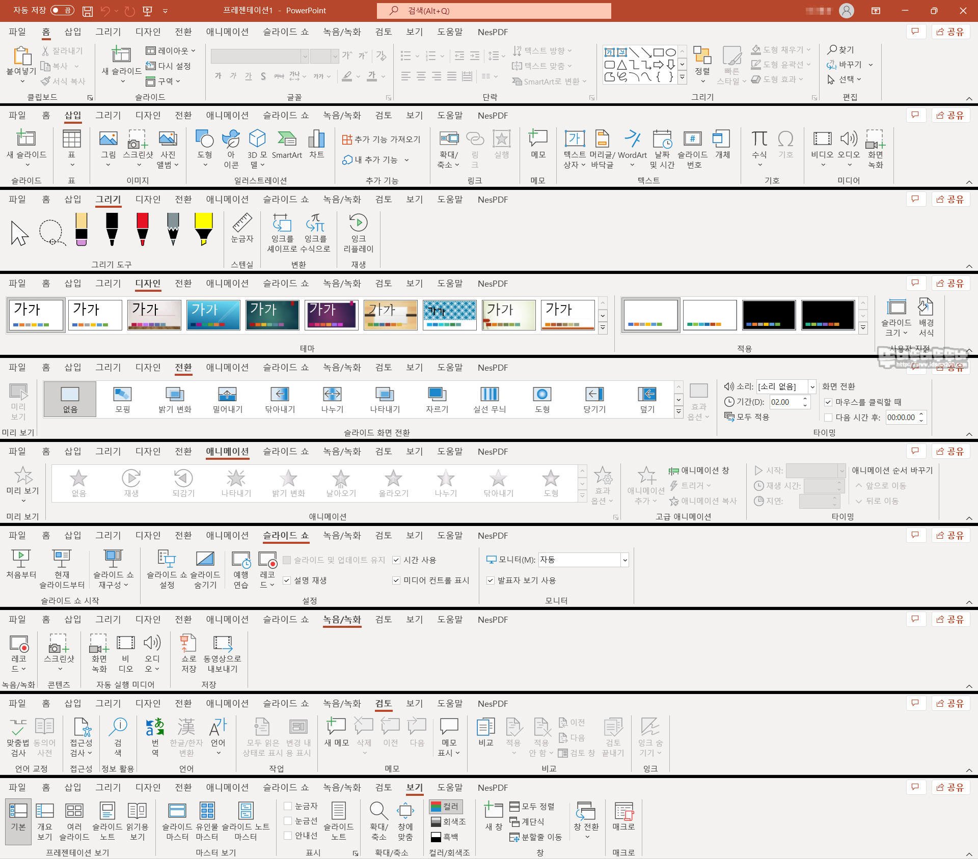 파워포인트 메뉴 구성.