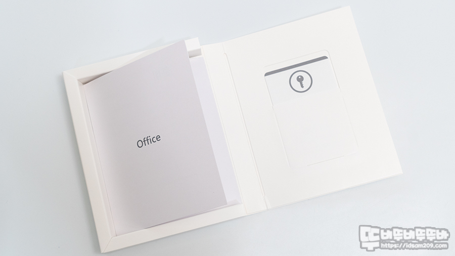 Office Home and Business 2021(PCK)는 마이크로소프트 홈페이지에서 다운로드하는 ESD 방식이 아닌 PKC [Product Key Card] 키 코드를 제공하는 패키지로 종이로만 구성되어 상당히 가볍습니다.