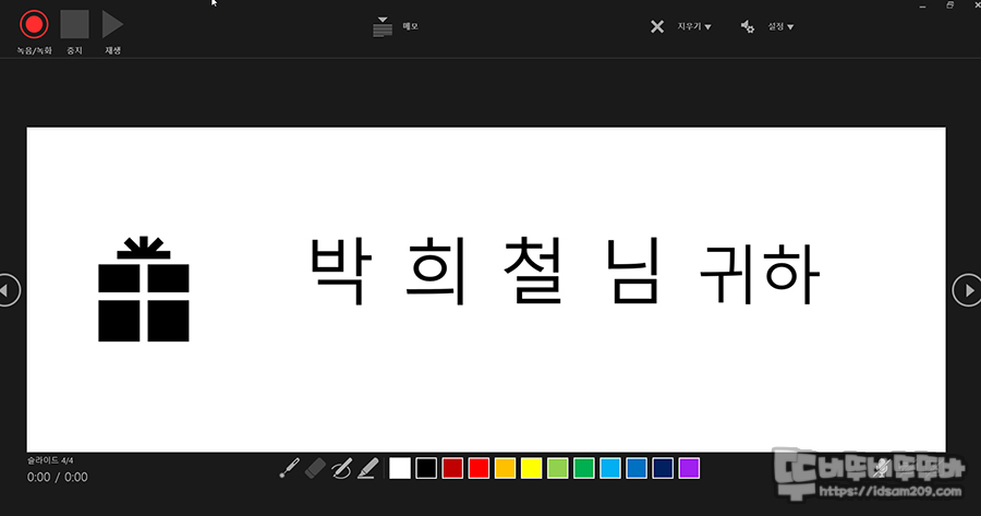 GIF로 만들어본 슬라이드 녹화 모습.