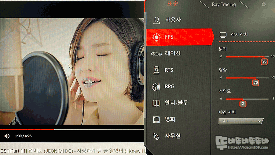 가급적 영상 재생 시에는 FPS 모드 이외의 모드를 선택하시면 특별하게 문제없이 사용이 가능하니 참고하세요.