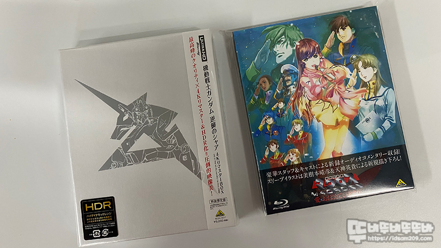 왼쪽이 UHD " 건담 샤아의 역습 ", 오른쪽이 " 마크로스 사랑 기억하고 있습니까? " 극장판 블루레이입니다.
