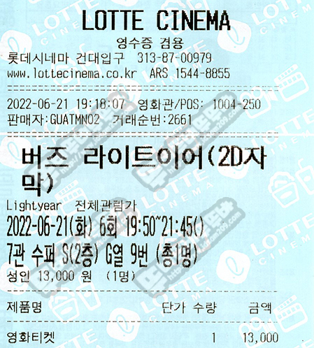 장소 : 롯데시네마 건대입구 수퍼S 7관 G열 9번