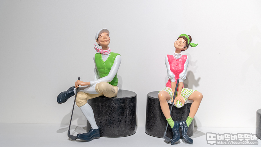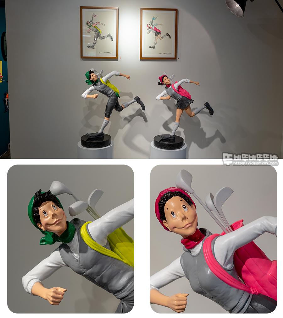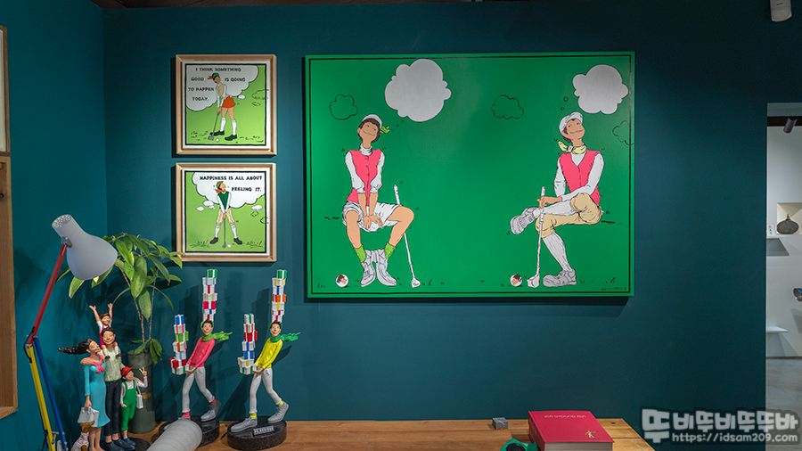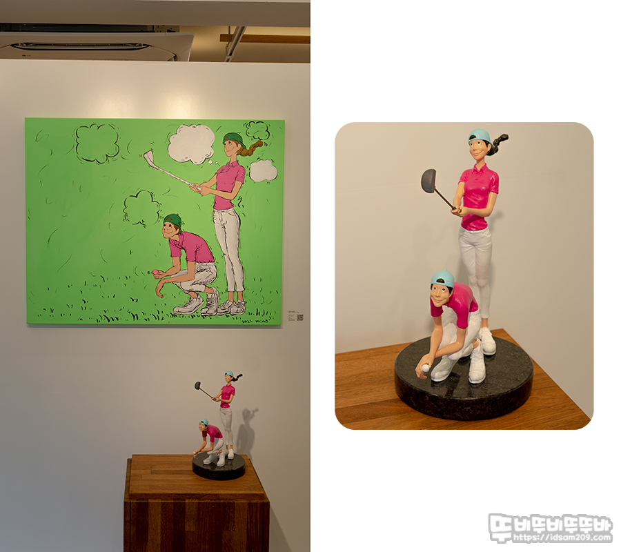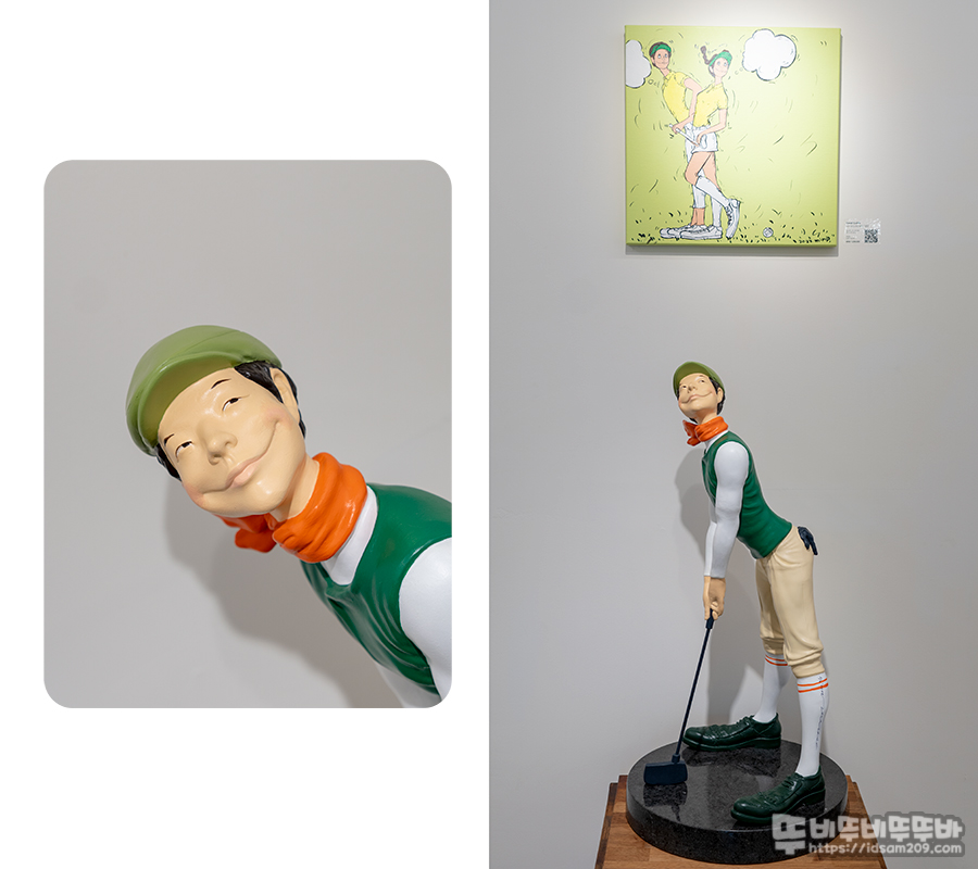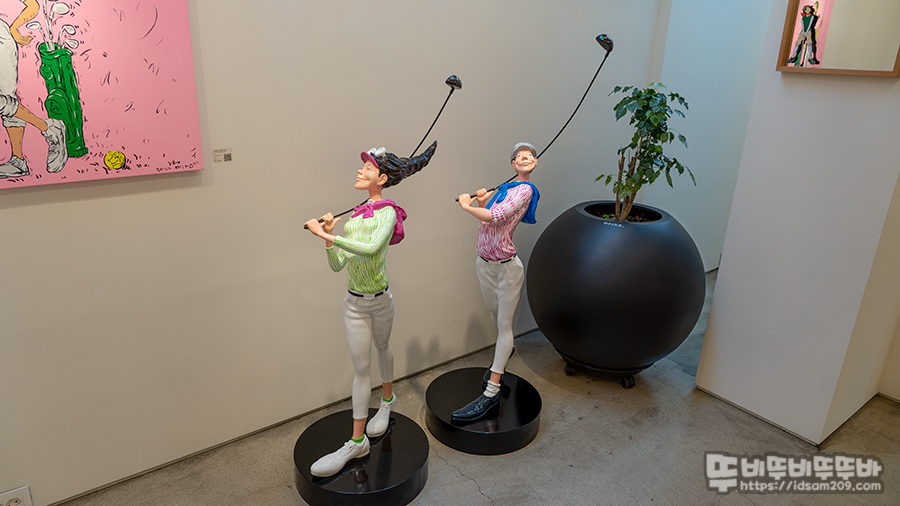 MGFS100 갤러리 김경민 작가 골프 & 아트 전시회는 김경민 작가의 독특한 캐릭터와 골프가 접목된 그림과 피규어 느낌의 작품으로 구성되어 입체감을 주는 게 특징인데요.
