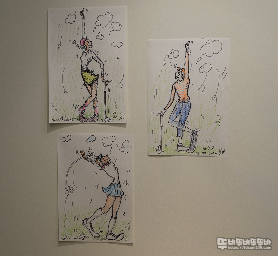 삼청동 MGFS100 갤러리 김경민 작가 골프 & 아트 전시회 관람하면 독특한 표정과 몸짓으로 표현하는 골프 플레이어 느낌이 꽤 신선하고 재미있어서 즐겁게 관람할 수 있었습니다.