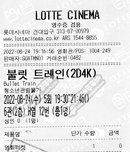 장소 : 롯데시네마 건대입구 5회 6관(레이저 상영관) H열 12번