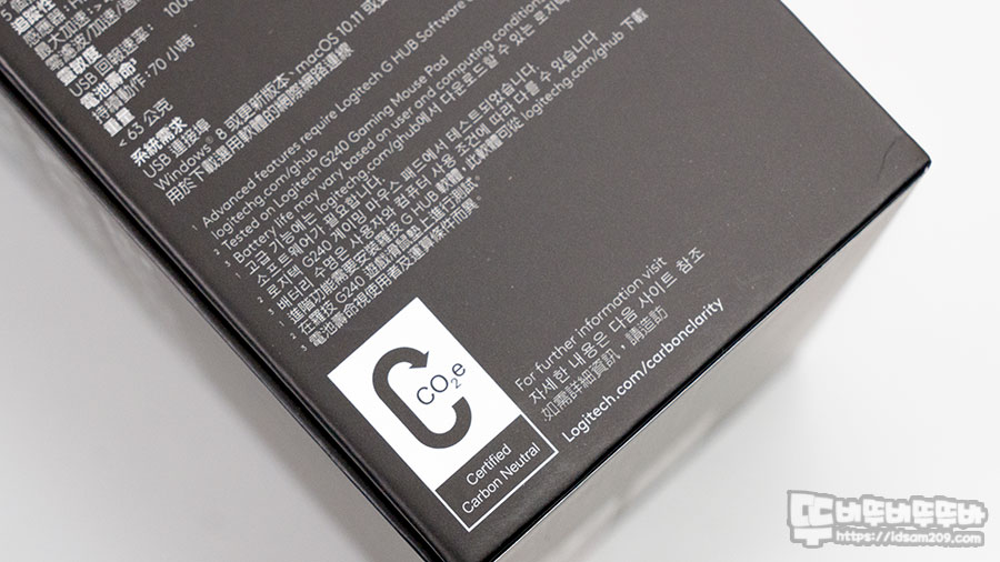 이번 제품 패키지에는 기존에 없었던 친환경적인 탄소 중립 인증 로고를 확인할 수 있는데 G PRO X SUPERLIGHT는 PVC를 사용하지 않았으며 친환경적인 PCR을 사용했다고 합니다.