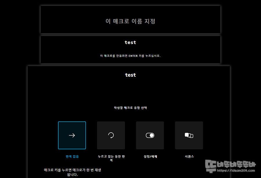 그중에서 가장 활용도가 많은 매크로 기능을 살펴보면 매크로 이름 입력 → 매크로 실행 형태 선택