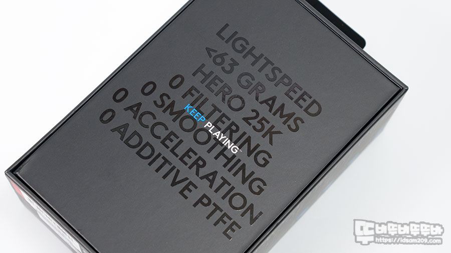 길이 : 125.0 mm / 좌우 폭 : 63.5 mm / 높이: 40.0 mm / 무게 : 63g, 센서 : HERO 25K / DPI : 100 – 25,600 DPI / 최대 가속: > 40G / 최대 속도: > 400 IPS / 제로 스무딩, 가속, 필터링 / 사용 시간 70시간 이외 정보로 내장된 배터리는 240mAh 리튬 폴리머 용량을 확인할 수 있습니다.