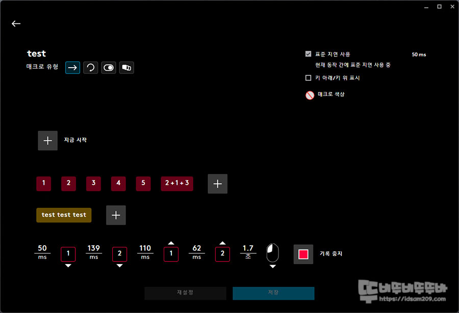 그리고 매크로 입력 순으로 진행하게 되며 매크로는 키 조합, 마우스 버튼 사용, 다중 키 입력, 텍스트 매크로 등 다양한 조합으로 매크로 파일을 생성이 가능하고요.