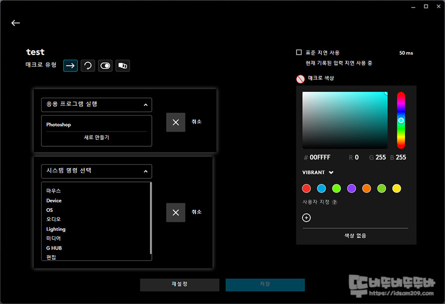 그밖에 응용 프로그램 지정, 시스템 명령, 매크로 컬러 등의 활용을 지원합니다.
