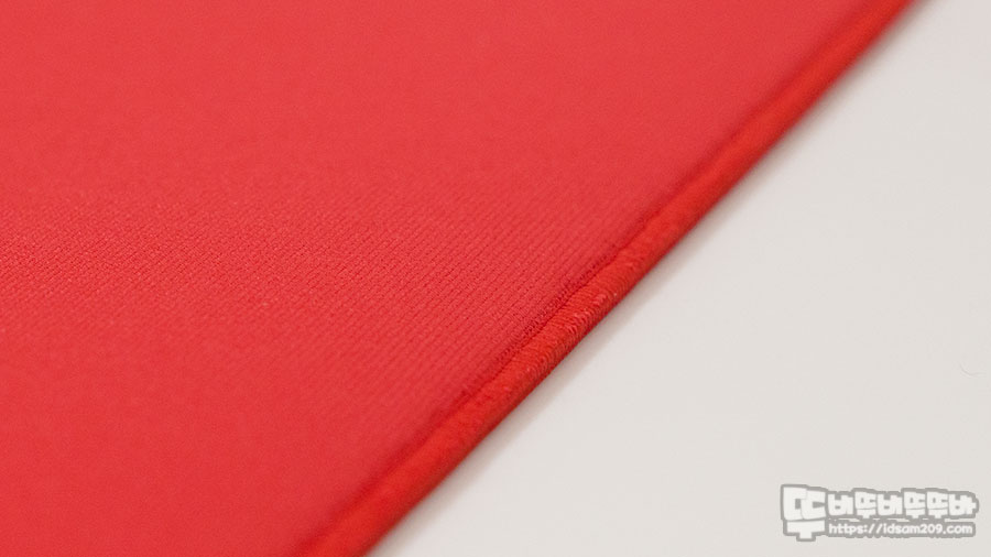 3.5mm 두께의 패드는 발포 폼 베이스에 촘촘한 오버로크를 사용하여 오버로크의 두께감을 느낄 수 없으며 패드의 높이보다 낮은 편이기에 손목이나 손바닥을 얻고 사용하더라도 엣지면의 불편함이 없습니다.