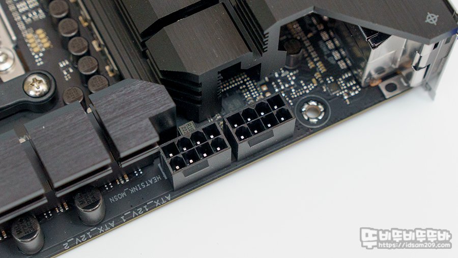 8+8핀 구성의 CPU 보조 전원부 모습과 Digi+ VRM 컨트롤러 모습.