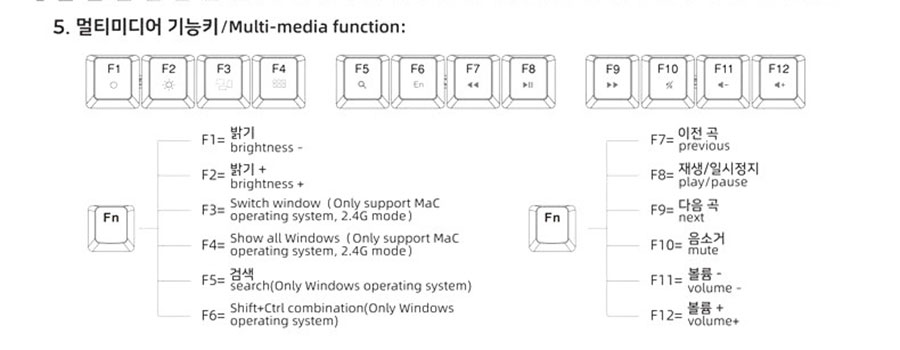 Fn + 펑션키 조합으로 사용하는 멀티미디어 기능은 노트북, PC, Mac OS, IOS 기기에 따라 다르게 적용되는 만큼 기능의 특징을 아시고 사용하시는 게 좋고요.