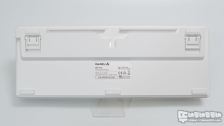 다얼유 A87PRO 레트로베이지는 키보드 바닥면에는 3 Way 방식으로 케이브를 고정할 수 있는 홈으로 사용자의 편의성을 더해주고 있고요.