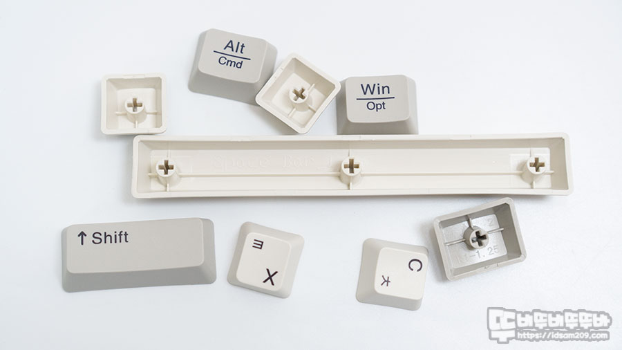 윈도우 OS와 Mac OS를 동시에 지원하는 제품답게 키캡에 관련 기능이 동시에 표현되고 있고 있네요.