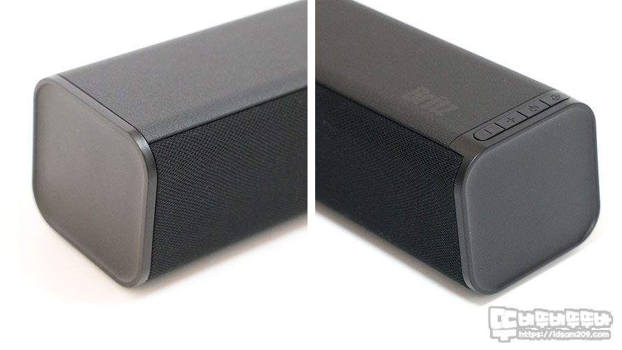 오른쪽에 끝부분에 Britz 로고와 전원 On/Off / 입력 소스 선택 / 볼륨 조절 버튼으로 컨트롤러를 구성을 확인할 수 있습니다.