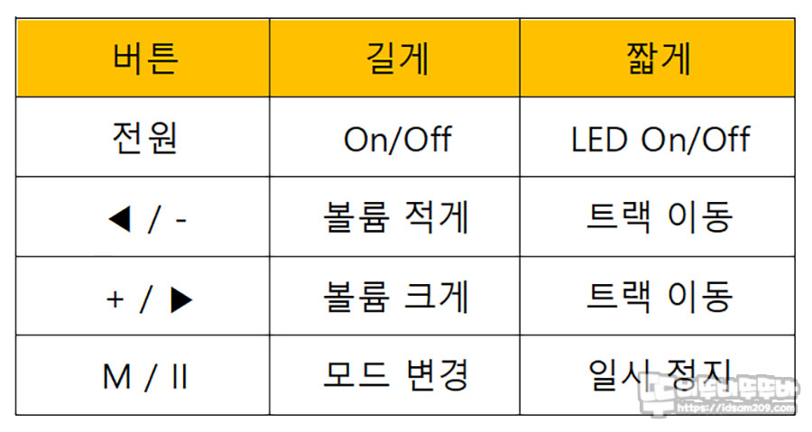 버튼 컨트롤은 길게 또는 짧게 누르는 방식으로 조작하게 되는데 간단하게 정리해 보겠습니다.