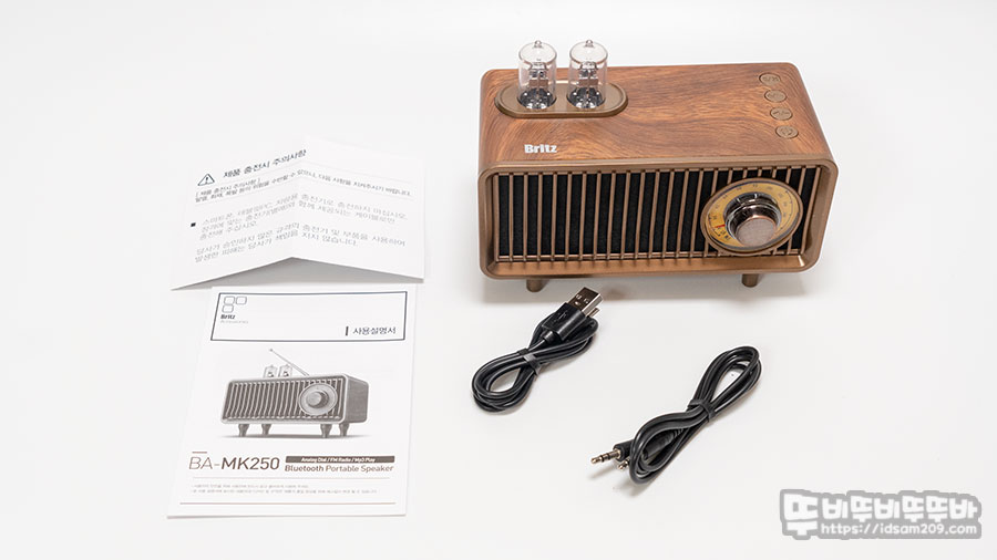 손잡이나 파우지가 없어서 휴대성 면에서 아쉬움이 있지만 구입하신다면 만족하실 수 있는 제품이니 날 좋은 날 나들이길에 함께하시기 바라며 앤티크 디자인 블루투스 스피커 Britz 브리츠 BA-MK250 리뷰를 마칩니다.