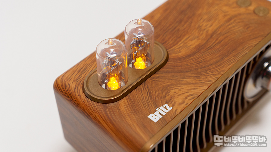 외형적으로 상당히 매력적인 Britz 브리츠 BA-MK250는 과거 전축에서 볼 수 있는 전면 그릴 느낌과 FM 라디오 주파수를 선택할 수 있는 다이얼 그리고 진공관 디자인의 무드등이 믹스되어 앤티크 느낌의 올인원 블루투스 스피커 모습을 보여주고 있는데요.