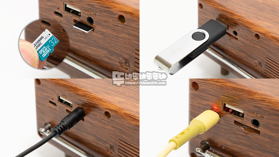 기본적으로 블루투스 스피커, 라디오, TF 카드 및 USB 메모리를 이용한 MP3 재생, AUX 단자를 이용한 외부 입력 등 다양한 기능을 제공하고 있어 활용도가 좋은 편인데요.