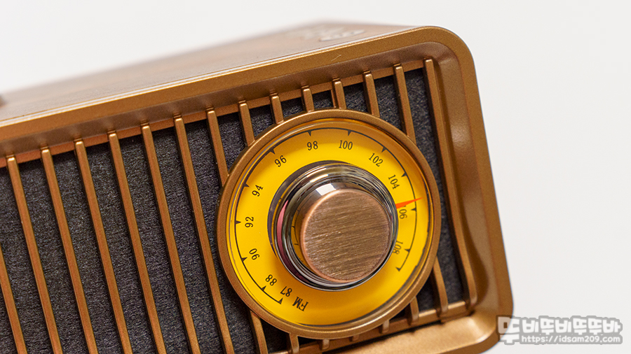 거기에 노란색으로 인쇄된 FM 라디오 주파수 다이얼 디자인도 올드한 느낌을 줍니다.