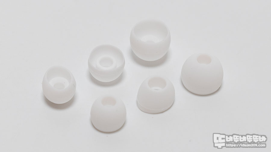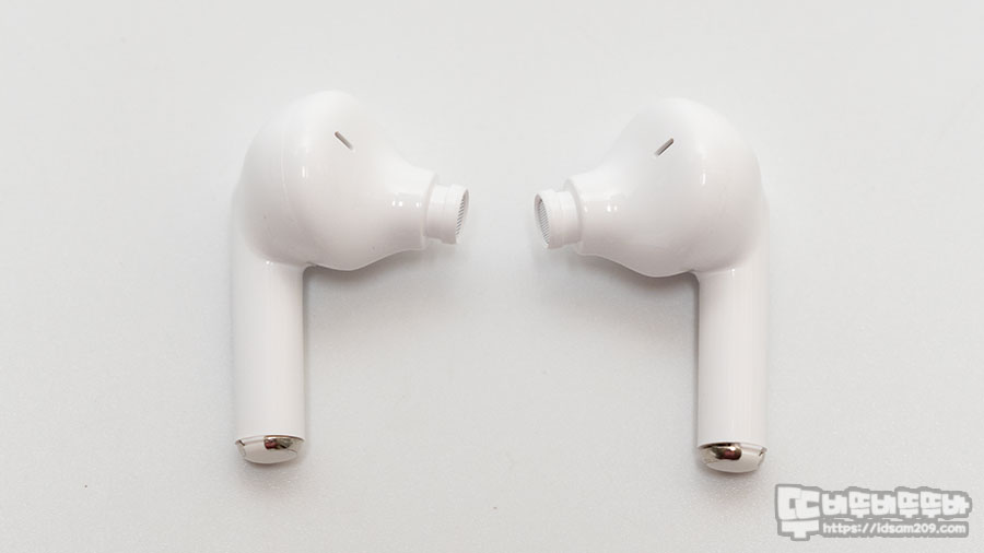 이어버드는 오프형 디자인에 노즐이 추가된 형태로 드라이버 유닛 사이즈를 가늠할 수 없지만 노즐 부분의 구경이 꽤 큰 편입니다.