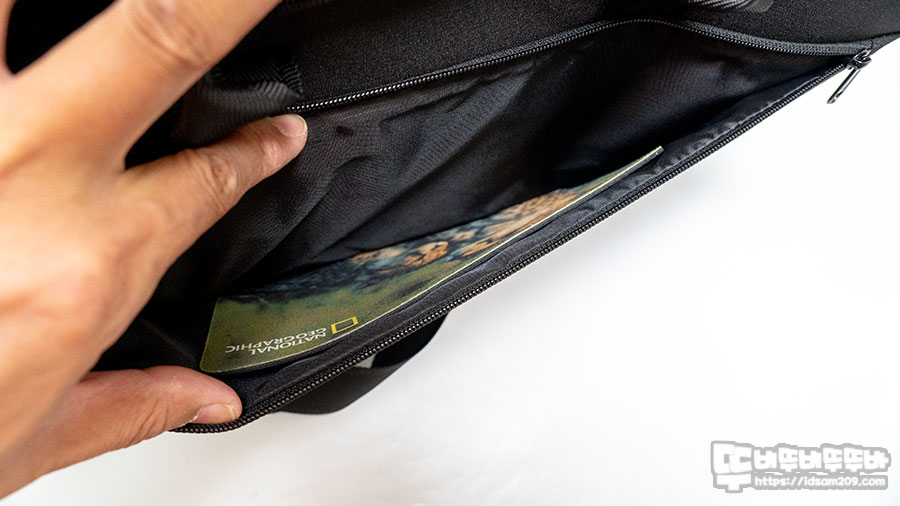 평소에는 파우치를 이용하는 편이지만 메인 포켓 내부에 인조 모피 극세사 안감과 좌우 아랫부분에 적용된 에어쿠션 덕에 파우치 없이 사용하면서 스크래치와 충격에 걱정 없이 안심하고 사용할 수 있었습니다.