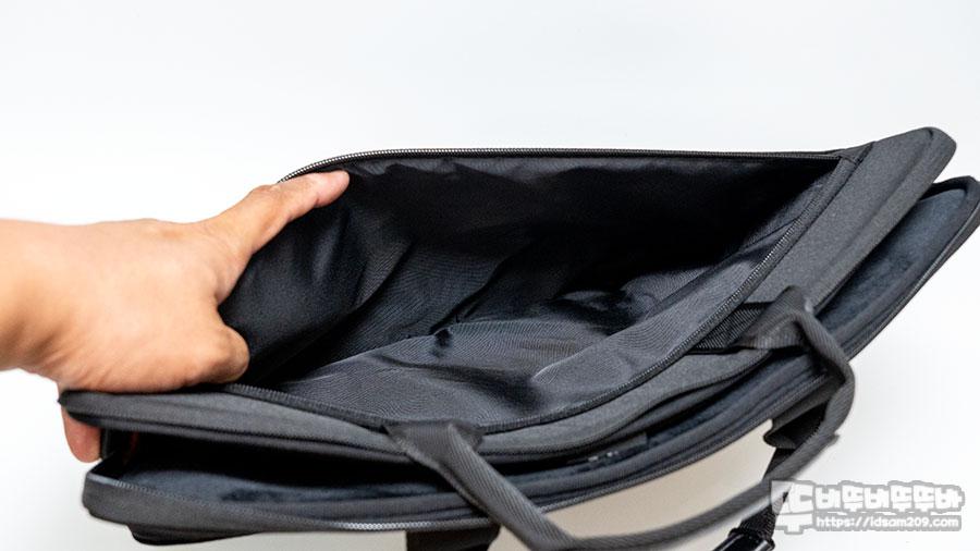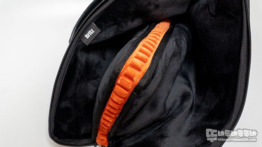 메인 포켓 내부를 살펴보면 가방 앞뒤 면에 스크래치 방지를 위한 인조 모피 극세사 안감 그리고 측면에는 에어쿠션이 적용되어 가방의 쏠림이나 측면 또는 수직으로 떨어뜨렸을 때 노트북 모서리가 받는 충격을 보호해 줍니다.