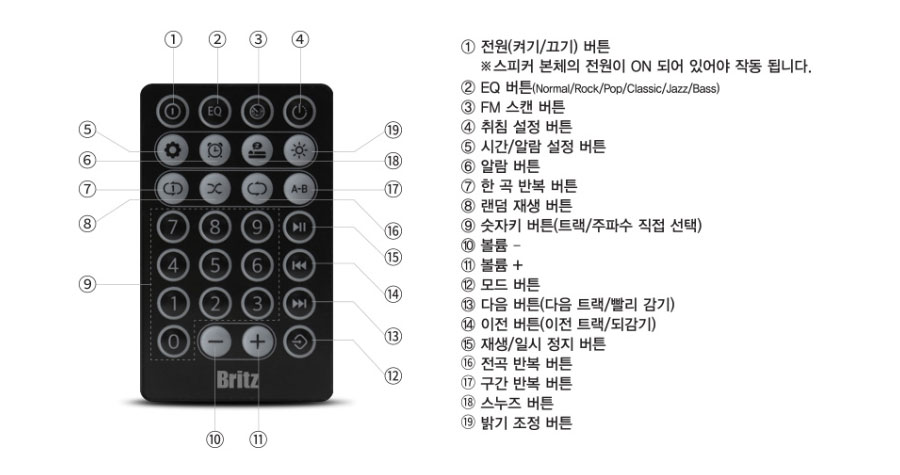 스피커 컨트롤 기능에서는 지원되지 않는 7번 한곡 반복, 8번 랜덤 재생, 16번 전곡 반복, 17번 구간 반복 기능이 추가되어 있어 SD 또는 USB 메모리를 통한 MP3 재생 시 도움이 될 같네요.