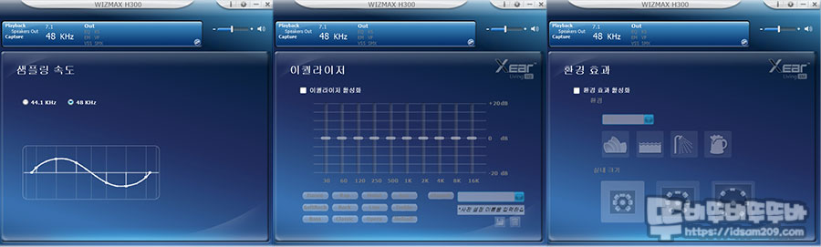 소프트웨어는 C-Media 레퍼런스 디자인의 모습으로 CM108B 칩셋을 사용된 걸로 추측되며 가상 7.1 채널을 사용하기 위해서는 7.1 Virtual Speaker Shifter 활성화 Xear Surround Max를 활성화하여 같이 사용하는 것을 추천드립니다.