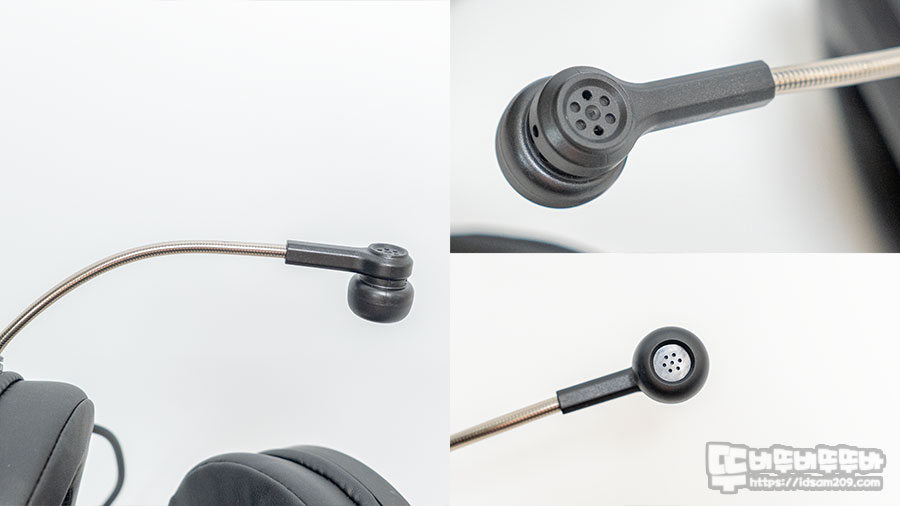 좌우로 대칭형으로 되어 있지만 왼쪽에 마이크와 유선 케이블이 부착되어 좌우가 구분됩니다.
