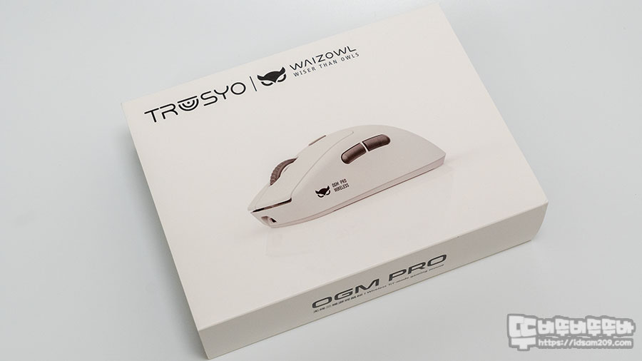 와이즈아울 WAIZOWL OGM PRO 무선 게이밍 마우스 패키지에는 제품의 이미지와 모델명 간단한 특징만 인쇄되어 심플한 느낌을 줍니다.