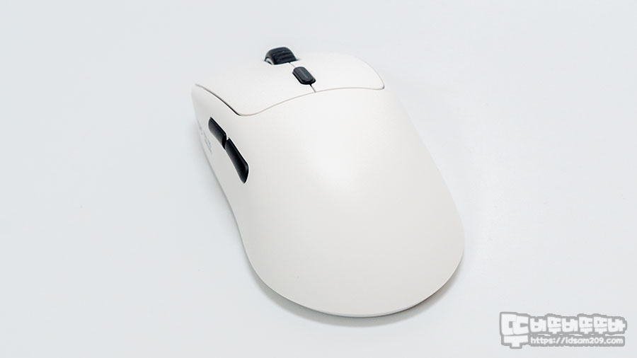 와이즈아울 WAIZOWL OGM PRO 무선 게이밍 마우스는 대칭과 비대칭 디자인이 믹스된 제품으로 생각보다 편안한 그립감을 주며 무광 러버코팅의 뽀송뽀송한 느낌도 그립감에 일조를 하네요.