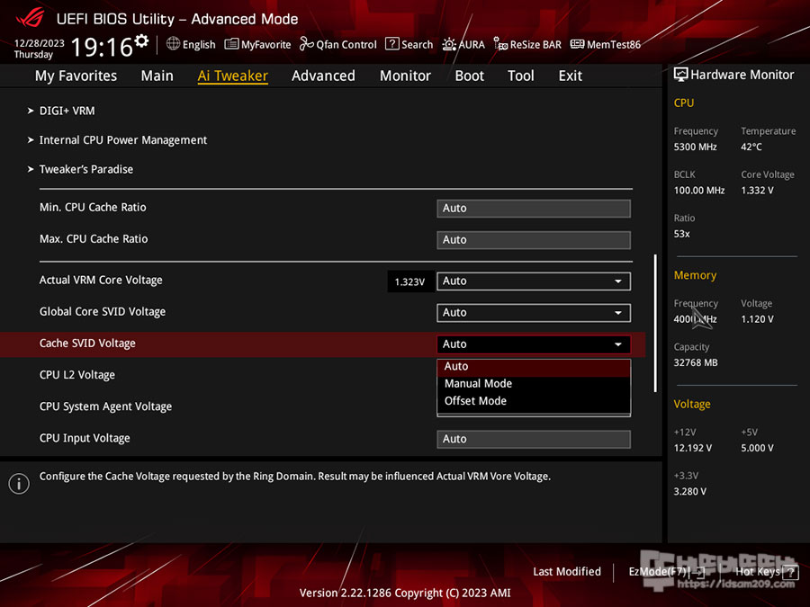 Actual VRM Core Voltage가 1.4~1.5V 가량 인가되고 있기에 0.1V~0.2V 사이의 값 중에 0.15V 값을 입력하여 테스트하였습니다.