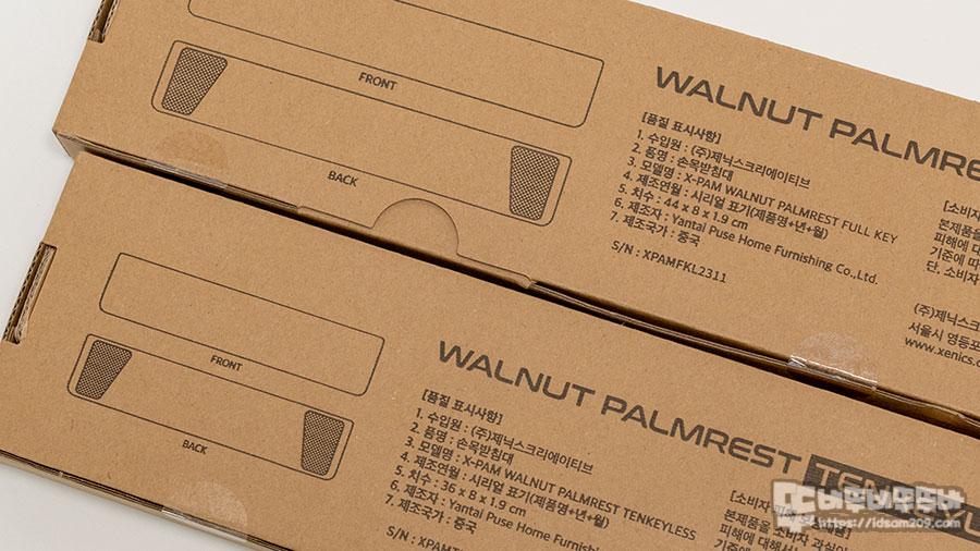 월넛 팜레스트는 풀배열 키보드에 최적화된 440mm X 80mm X 19mm 사이즈, 텐키리스에 최적화된 360mm X 80mm X 19mm 사이즈로 출시되어 키보드에 따라 선택이 가능합니다.