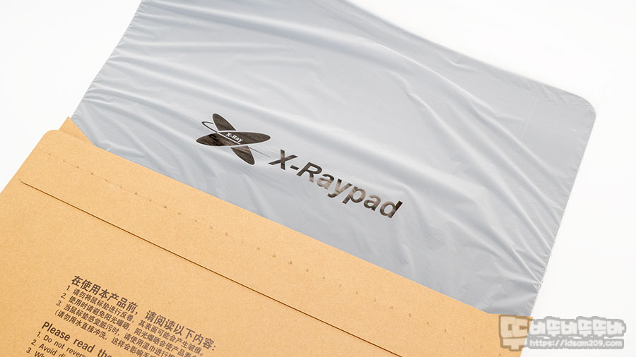 X-raypad 아쿠아컨트롤프로는 말려있지 않고 펼쳐진 플랫 패키지로 디자인되어 개봉해서 바로 사용해도 빳빳하게 펼쳐진 마우스 패드를 사용할 수 있게 신경을 써주고 있습니다.
